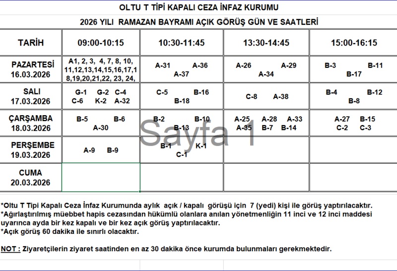 2026 Yılı Ramazan Bayramı Açık Görüş Günleri